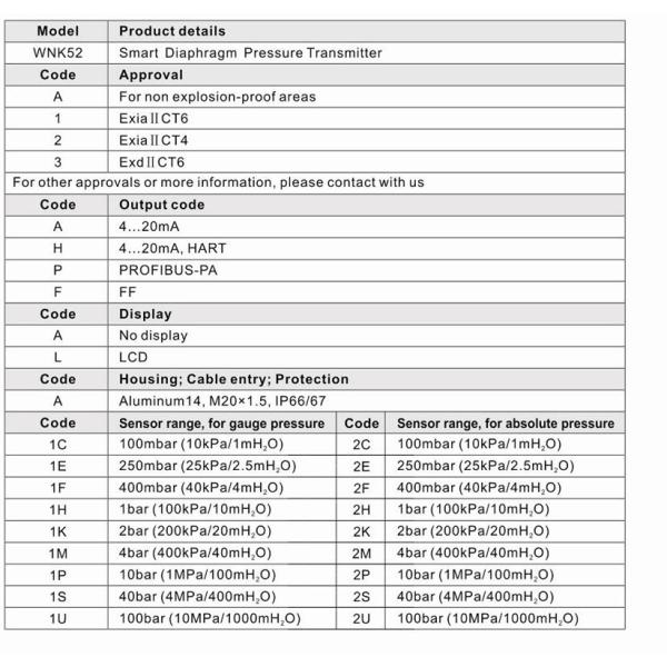 WNK5 series pressure transmitter is the high performance pressure transmitters provided by Hefei WNK Smart Technology Co., Ltd. It transforms the physical signal of pressure, differential pressure and level etc into standard signal, by collecting cell sensor and digital processing circuit.